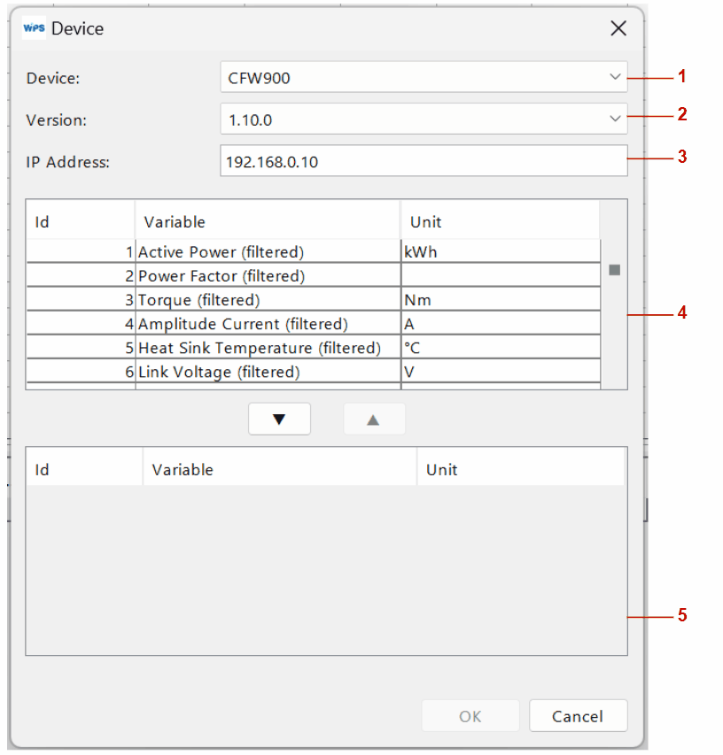 • 4: Lista de parâmetros disponíveis para monitoramento.