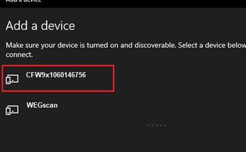 Espere unos 30 segundos o hasta que encuentre el producto en la lista de dispositivos y selecciónelo.