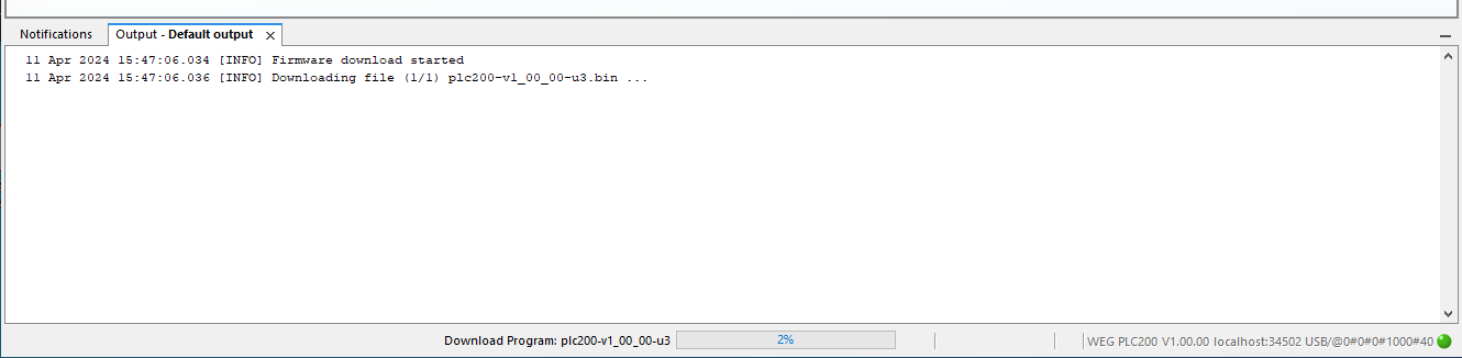 8) Ao concluir a gravação, uma mensagem na janela de Saída é apresentada e o dispositivo reseta.