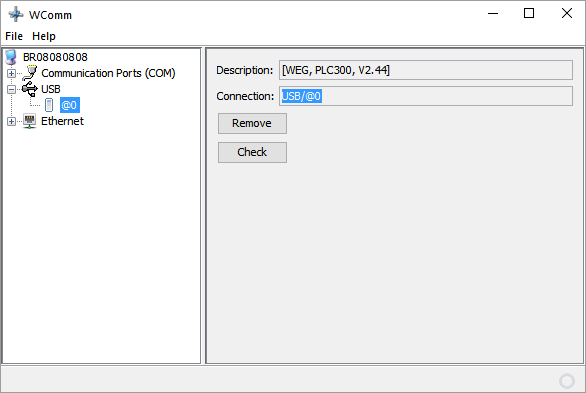 • Tipo de comunicação com o recurso: indicar a forma de comunicação entre o WComm e o recurso. Esta informação está disponível na seleção da porta de comunicação, a qual deve ser selecionada e copiada, conforme apresentado nas imagens a seguir: